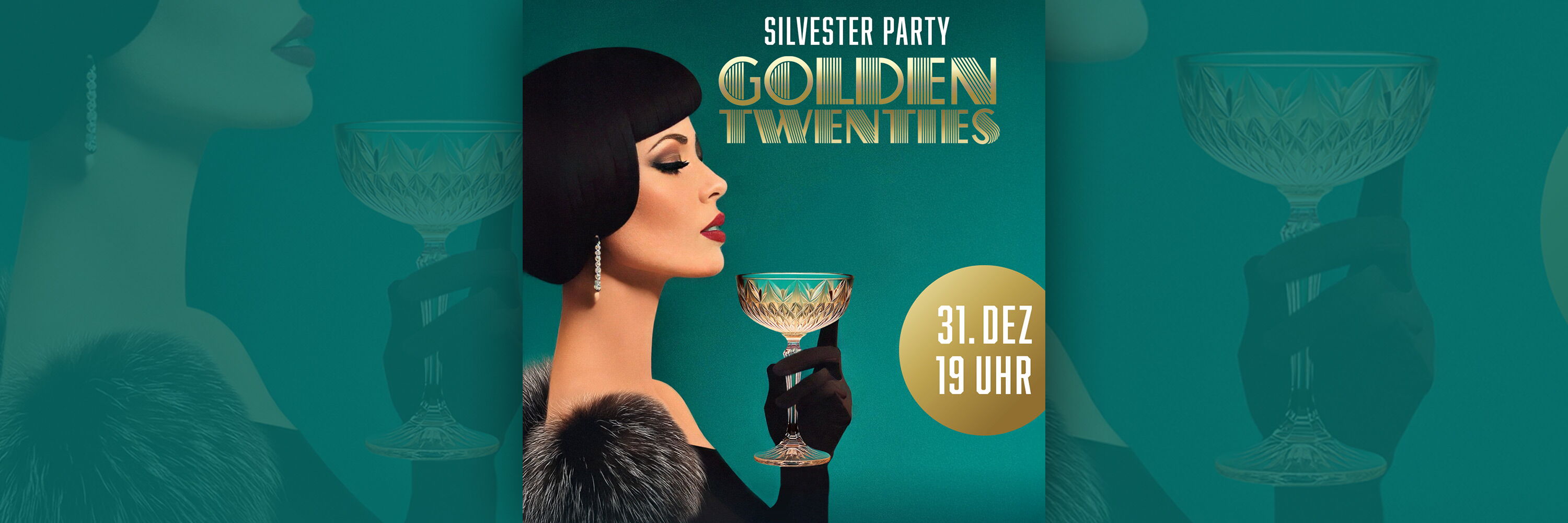 Erlebe eine Nacht voller Glanz und Glamour, wenn wir den Jahreswechsel im Stil der goldenen 20er feiern!